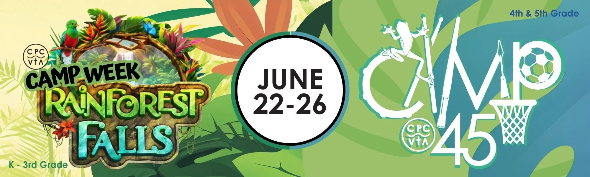 All kids entering Kindergarten Fall 2026 to 3rd grade are invited to Camp Week-Rainforest Falls! Explore the nature of God with us as we sing fun songs, play games, do arts & crafts, and make new friends! Together we'll explore what it means to be rooted in God.